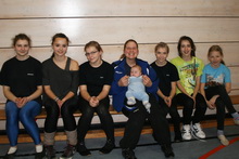 Gruppe Bensheim I (von links: Johanna Northe, Sophia Krieger, Lara Drießnack, Trainerin Karina Wenz mit Nachwuchs Marie, Tina Drießnack, Marie Lehmann und Nadja Essing)