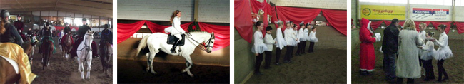 Die RG Bensheim hatte am 14.12.08 alle Mitglieder und Freunde des Vereins zum geselligen Beisammensein in unserem Reiterstübchen eingeladen. Dieses Jahr stand sie unter dem Thema "Schwanensee". Das Ballett "Schwanensee" wurde durch die Reiter und Voltigierer in verschiedenen farbenprächtigen Schaubildern und gelungenen Darbietungen aufgeführt. Im Anschluß daran bescherte der Nikolaus alle Mitwirkenden. Als Überraschung des Nachmittags präsentierte Birgit Kottmann-Michels den neu gegründeten und sehr talentierten Chor "Die RGB-Singers", die unseren Trainern ein Ständchen brachten. Die diesjährige Weihnachtsfeier fand bei den Zuschauern und Gästen eine überwältigende Resonanz. Der Abend fand in einem bis zum letzten Platz gefüllten Reiterstübchen seinen geselligen Ausklang.