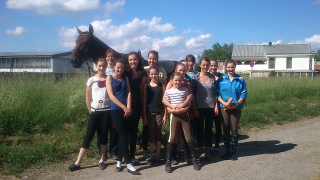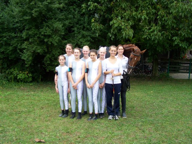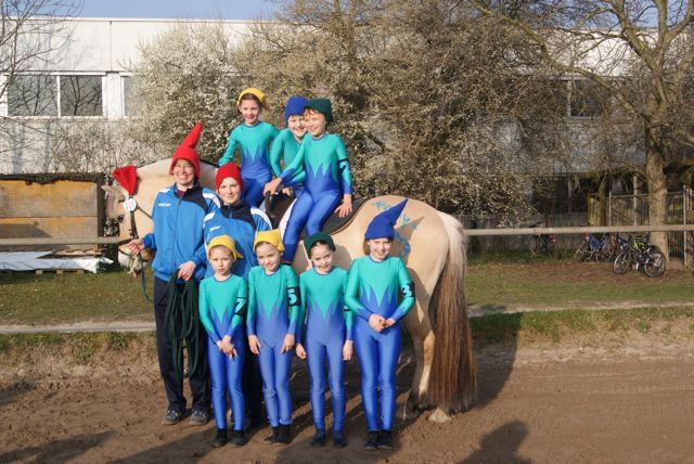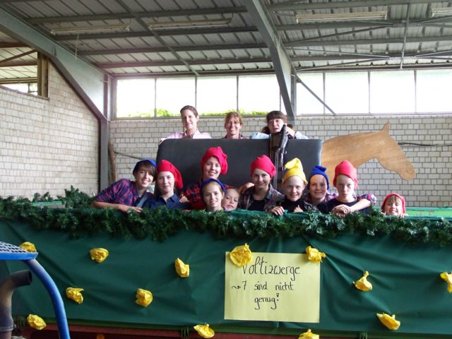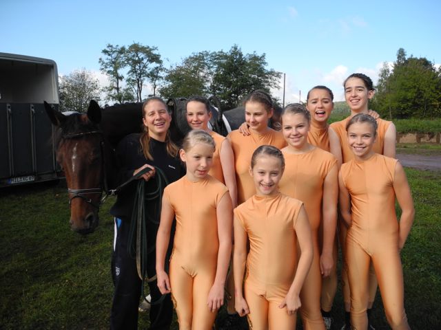 Wir nehmen mehrmals im Jahr an Turnieren teil, aber das ist bei uns noch lange nicht alles: die Voltis unterstützen die Reiter mit akrobatischen Einlagen bei Quadrillen (das siehst du auch bei den Bildern 2014), und wir nehmen mit einem Festwagen beim Winzerfestumzug teil.